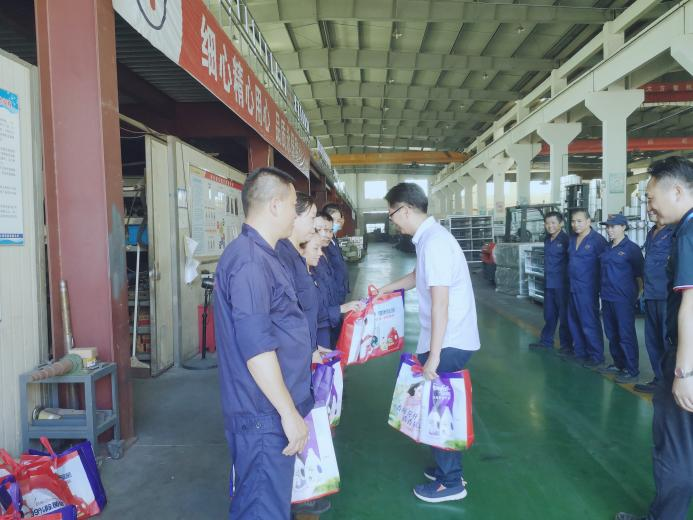 公司經管部貝建波代表公司全體干部職工感謝街道工會領導對我公司的親切關懷,表示一定會切實抓緊抓好防暑降溫工作,合理安排作息時間,確保安全生產。并積極實施以人為本的企業管理戰略,鼓勵他們堅定信心,積極面對生活,努力克服困難,在黨和政府及工會組織的關心幫助下,把日子越過越好!